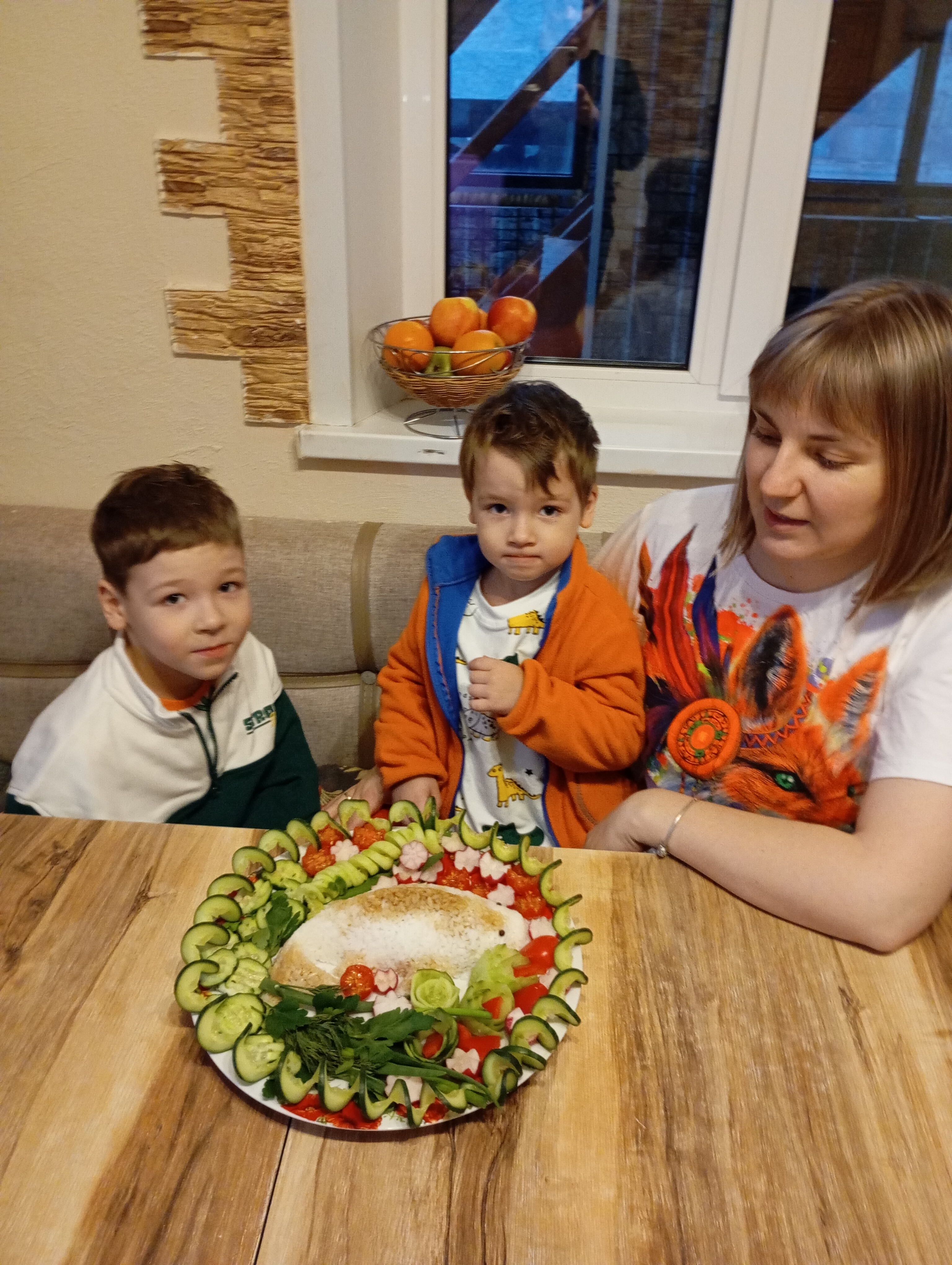 конкурс «Разговор о правильном питании» в 2024-2025 году, тема конкурса «Искусство на тарелке» конкурсная работа семьи Кальпиных "Рисовая рыбка в море овощей"