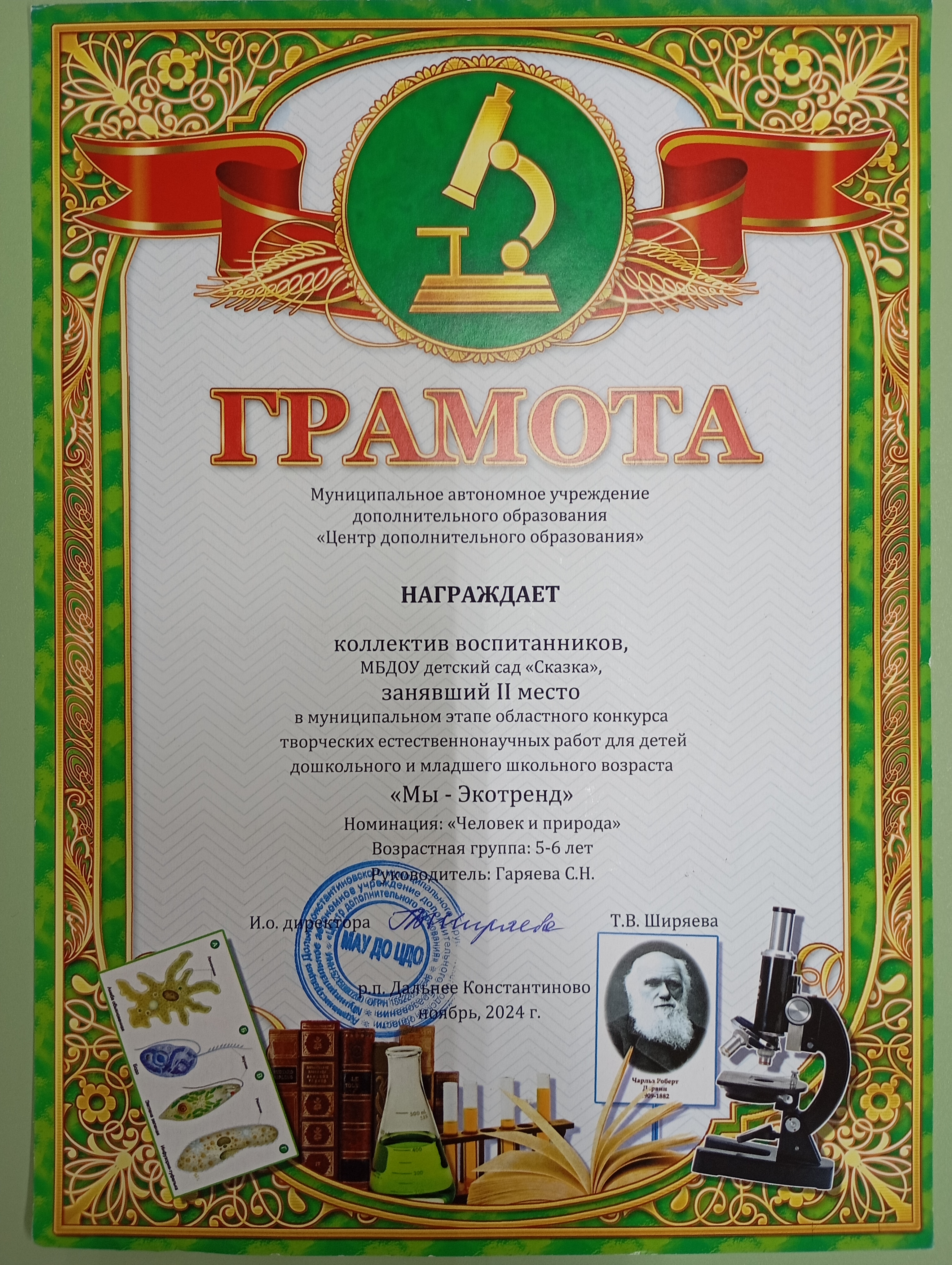 областной конкурс творческих естественнонаучных работ для детей дошкольного и младшего школьного возраста «Мы - Экотренд» "Человек и природа"
